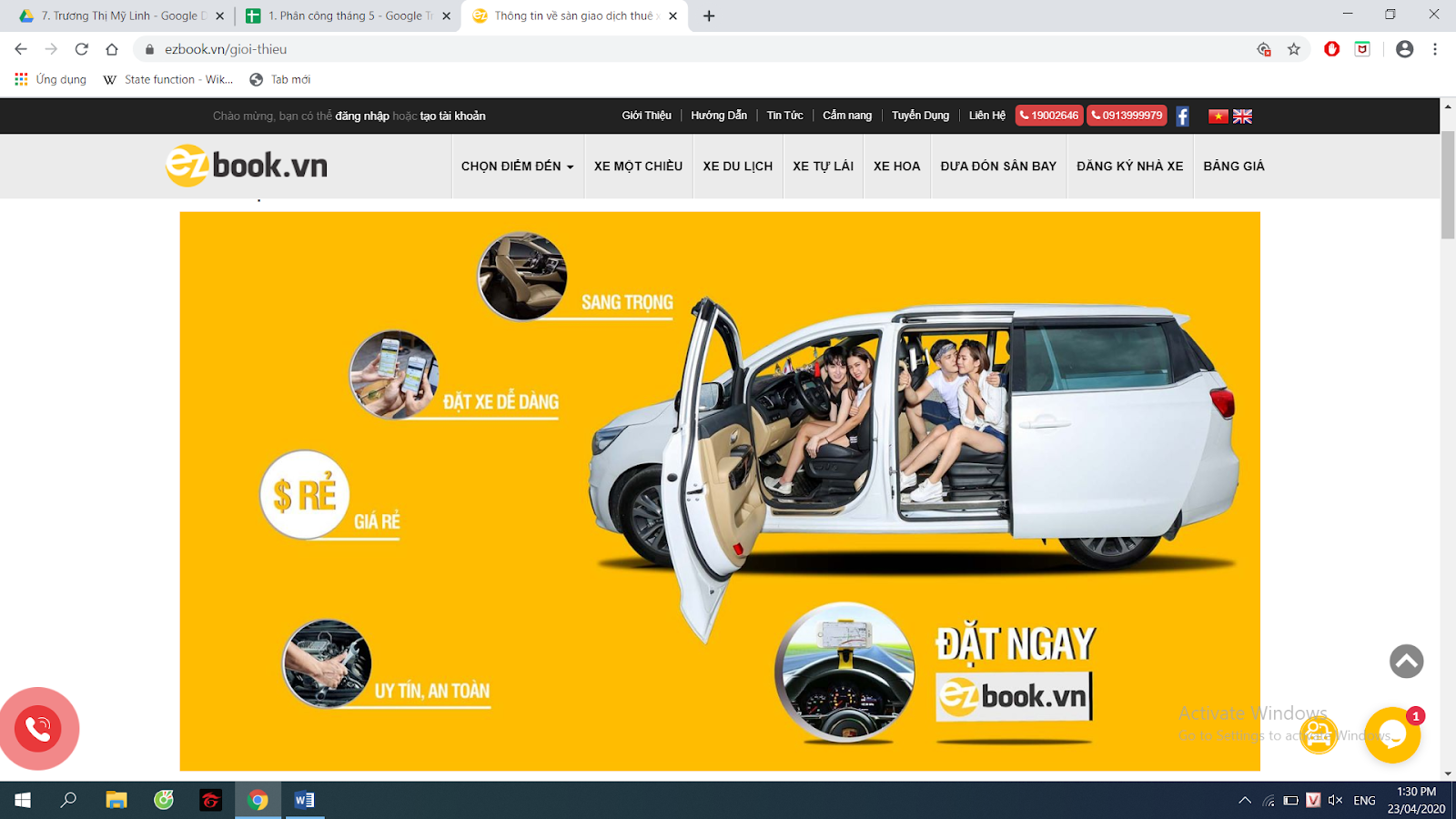 Dịch vụ thuê xe uy tín Ezbook.vn